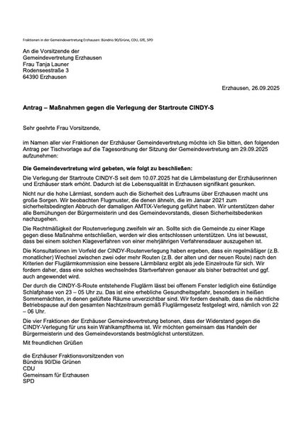 Antrag-Maßnahmen gegen die Verlegung der Startroute Cindy S