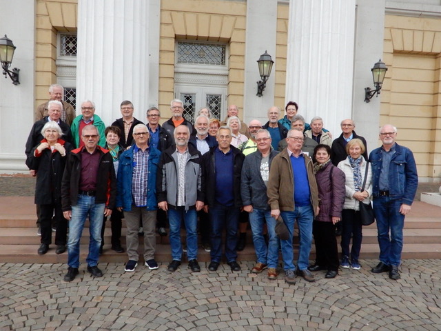 Zweimal im Jahr findet vor dem Säulenportal ein großer Flohmarkt statt. Aber was verbirgt sich eigentlich hinter den Mauern: Das Hessische Staatsarchiv. Wer bislang dachte, dass hier nur besondere Leute reindürfen, der irrt gewaltig. Daher wollten 29 Erzhäuser und Freunde der AG 60 plus genau wissen, was hinter dem Portal im „Haus der Geschichte„ passiert.