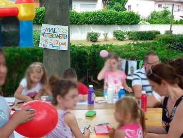 Ein großes Interesse fand bei den jungen Besuchern, der Malwettbewerb: " Wie stelle ich mir den zukünftigen Bürgermeister Erzhausens vor", da alle Bürgermeisterkandidaten vor Ort waren, konnten die Kinder auch am Original Maß nehmen und manch schönes Bild entstand.