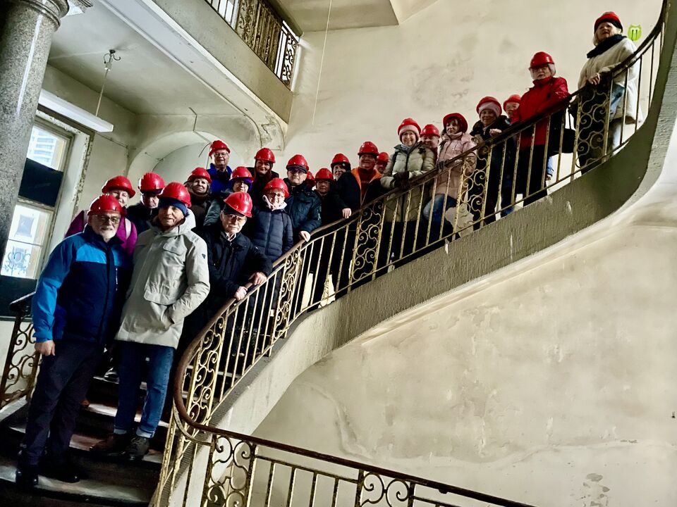 Mit festem Schuhwerk, warm gekleidet und mit Taschenlampen ausgerüstet machte sich die SPD-AG 60 plus am späten Dienstagnachmittag der vergangenen Woche mit der S-Bahn auf den Weg nach Frankfurt, um unter fachkundiger Führung das Alte Polizeipräsidium zu besichtigen. Das Gebäude zählt zu den eindrucksvollsten historischen Bauten der Stadt. Errichtet zwischen 1911 und 1914, diente es über viele Jahrzehnte als zentrale Dienststelle der Frankfurter Polizei. Seit 2003 steht es leer – und öffnete im Rahmen dieser Führung seine Türen für einen besonderen Blick hinter die Kulissen.