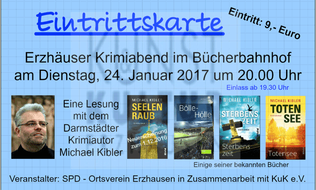 Der SPD Ortsverein Erzhausen organisiert in Zusammenarbeit mit KuK e.V. eine Autorenlesung mit dem bekannten Darmstadt Krimiautor Michael Kibler.