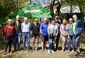 ERZHAUSEN (hm) Am Dienstag letzter Woche war es wieder so weit. Eine Gruppe von 14 Teilnehmer*innen traf sich um 11 Uhr am Hessenplatz um mit uns in die Pedale zu treten. Erfreulich hierbei war, die Radlerinnen waren in der Überzahl. Es ging Richtung Westen nach Worfelden am Golfplatz Bachgrund vorbei, über Klein-Gerau in die Innenstadt der Kreisstadt Groß-Gerau. Auf Empfehlung kehrten wir direkt am Marktplatz in einem kleines Italienischen Restaurant ein. Es war ein guter Tip! Für uns war im Hinterhof ein schönen schattigen Platz reserviert. Ausgiebig nutzen wir die Mittagspause um die guten italienischen Speisen zu kosten die uns angeboten wurden. An gekühlten Getränken fehlte es selbstverständlich auch nicht. Nach ca. zwei Stunden Aufenthalt und vielen interessante Gesprächen war Aufbruch angesagt. Der Rückweg führte an Storchennestern vorbei durch Berkach und über schöne Wald- und Wiesenwege nach Gräfenhausen. Hier war es selbstverständlich an diesem warmen Tag eine Rast an der Eisdiele in der Nähe der Kirche einzulegen. Dies wurde von vielen der Radlern genutzt um sich mit einem guten Eis zu erfrischen. Die restlichen drei Kilometer nach Erzhausen wurden locker angegangen und wir waren gegen 17 Uhr wieder in der Heimat zurück.