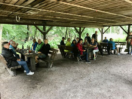 ERZHAUSEN (hm) Am Dienstag letzter Woche war die geplante Radtour mit über 25 Teilnehmern leider ins Wasser gefallen. Wir hatten bis letzte Minute auf eine bessere Wetterlage gehofft . Der Ausfall war um so schwerwiegender, da sich das AG 60 plus Team an diesem Tag etwas besonderes hatte einfallen lassen. Die Radtour fand also nicht statt, aber es wurden 6 Autos aktiviert und mit der ganzen Mannschaft ging es zum überdachten Grillplatz nach Mörfelden. Hier hatten uns Hans Santowsky und Alois Reichel empfangen und bereits ein üppiges Picknick vorbereitet. Es gab warme Fleischwurst mit Brötchen, eingelegte Gurken und Paprika. Selbstverständlich fehlte es nicht an entsprechenden Getränken. Zum Abschluss spendierte Hans noch etwas hochprozentiges zur Verdauung. Nach ca. 3 Stunden Aufenthalt mit vielen Gesprächen und Diskussionen ging es wieder mit den Autos zurück nach Erzhausen.