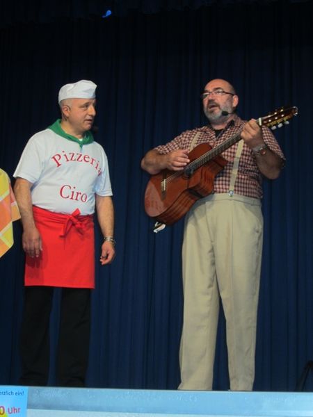 Die fiktive Künstleragentur “Schmidt & Schmitt GmbH & Co. KG mit beschränkter Haftung e.v. auf Aktienbasis des bürgerlichen Rechts“ bildete dabei auf der Bühne den Ort des Geschehens, vertreten durch den Büroleiter Schmidt (Harry Borgner) und dessen Mitarbeiter Schmitt, einem italienischen Pizzabäcker namens Ciro, dessen Aufgabe es eigentlich ist, die Kantine zu betreiben. Der sich aber in alles und jedes einmischt und so ununterbrochen für Chaos sorgt. Dabei kommt kein Klischee zu kurz, was laufend für Lachpausen und immer wieder für großen Beifall sorgte.