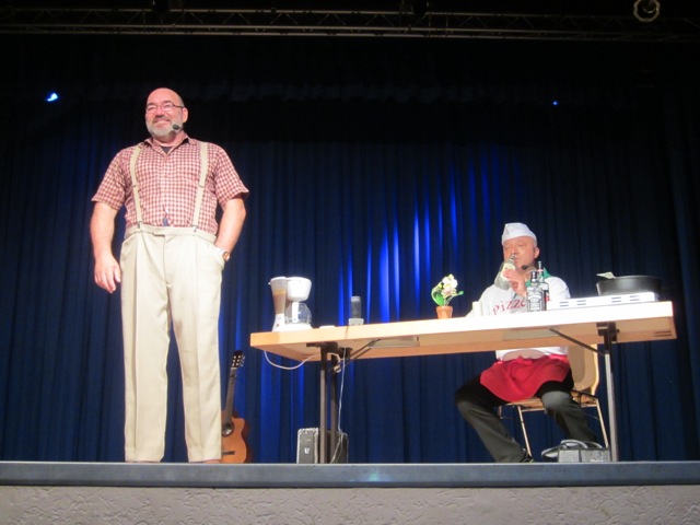 Unter diesem Motto hatte der SPD-Ortsverein Erzhausen am Freitag, 23. Juni 2017, ins Sportheim Erzhausen eingeladen und entsprechend dem Motto konnten die Gäste Spundekäs` und Pizza für das leibliche Wohl und zur besseren Einstimmung bestellen. Harry Borgner und Ciro Visone, beide bekannt durch Funk und Fernsehen, unterhielten die anwesenden knapp 300 Gäste über zwei Stunden lang mit Mundart-Kabarett, Parodien und Comedy.