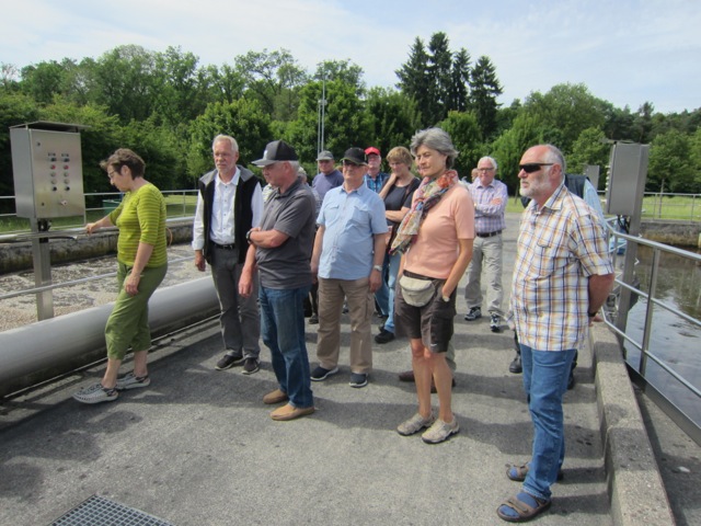Wir verfolgten die einzelnen Reinigungsstufen des Abwassers von seiner Einleitung bis zum Ablauf in den Hundsgraben. Erste Station war die mechanischen Reinigung mit der Rechenanlage für Grobschmutz, Sand- und Fettfang und Vorklärung. Weiter ging es zur biologischen Reinigung des Abwassers, den Belebungsbecken und der Nachklärung. Für uns Teilnehmer sehr interessant auch das zur Zeit laufende Forschungsprojekt zur Beseitigung von Spurenstoffen aus dem Abwasser wie Rückstände von Arzneien, Haushalts-und Pflegemitteln und Mikroplastikteilchen. Unterstützt wird die Forschungsarbeit vom Land Hessen und der TU-Darmstadt.